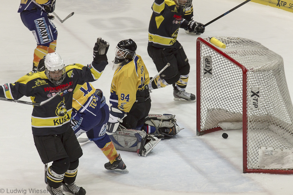 Und diese Richtung, nämlich Richtung Gehäuse des Gastgebers, wurde das ganze Spiel über konsequent eingeschlagen. Oft konnten sich die SG Spieler minutenlang nicht aus dem eigenen Drittel befreien trotz aller Leidenschaft, die das Team an den Tag legte. Sicher steckte das Spiel vom Vortag den Gastgebern noch in den Knochen, doch die Luchse zeigten das ganze Spiel über die nötige Konsequenz und den Willen einen klaren Sieg zu feiern. Lediglich im letzten Drittel wurde etwas zu sehr „gezaubert“ und die Reihen nochmals durcheinandergewürfelt, aber wer soll es einem bei einem Spielstand von 11:0 schon verdenken.